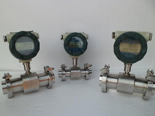 在管道中心安放一個渦輪,兩端由軸承支撐。當流體通過管道時,沖擊渦輪流量計葉片,對渦輪流量計產生驅動力矩,使渦輪流量計克服摩擦力矩和流體阻力矩而產生旋轉。在一定的流量范圍內,對一定的流體介質粘度,渦輪流量計的旋轉角速度與流體流速成正比。由此,流體流速可通過渦輪流量計的旋轉角速度得到,從而可以計算得到通過管道的流體流量。