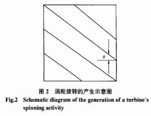 如圖2所示,由于渦輪對流體是作相對運動,如果渦輪旋轉的圓周速度V=w·r與軸線平行的流速與葉片的夾角為θ,流通面積為A,則介質流速V=Q/A,則推動渦輪旋轉的力矩M可用下式表示: