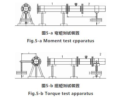 對于高壓智能一體化氣體渦輪流量計來說,還應當詳細說明流量計所需求的彎曲與扭力力矩的保護水平。此數(shù)據(jù)是通過試驗直接獲得,彎矩測試裝置如圖5-a 所示,直管段1 連接氣體流量標準裝置,在直管段2 預先確定的力臂L 位置附加垂直方向的力F 而形成彎矩M;扭矩測試裝置如圖5-b 所示,直管段1 連接氣體流量標準裝置,在直管段2 側(cè)面預先確定的力臂L 位置附加垂直方向的力F 而形成扭矩T。而彎矩與扭矩均是作用于流量計入口與出口法蘭處。由于此項測試主要針對流量計強度的校核,為了更有說服力、提高可靠性,故將鋁合金殼體的中低壓渦輪流量計DN80-G100用于此次測試。而整個測試過程是將砝碼F 按EN12261 表10 中要求1 倍、2 倍直至做到4 倍(即力矩為3 040 N·m),未發(fā)現(xiàn)流量計殼體有任何異常變化。而測試結(jié)果表明在施加砝碼F 之前、過后得到的指示誤差與施加砝碼F 之前的指示誤差未有明顯變化。