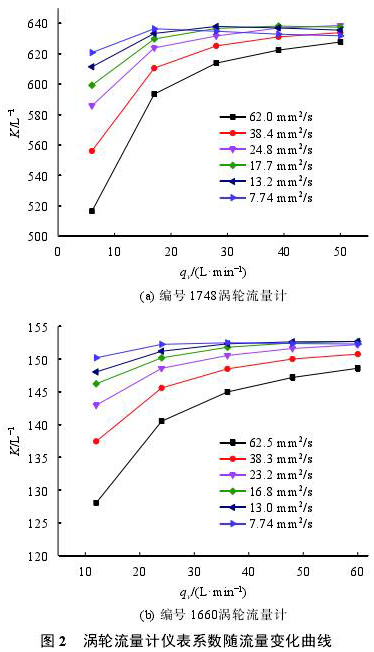 層流狀態下,成品油計量表儀表系數隨qv/η增大而迅速增大,可見儀表系數對介質粘度非常敏感。