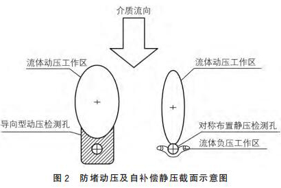 新甲苯計量表采用拋物面導向型結構作為動壓測點,采用對稱自補償型式的靜壓測點,可以有效地解決來流方向偏流時信號的穩定采集,來流偏離管道軸線時,可以維持輸出差壓基本不變,如圖2所示。