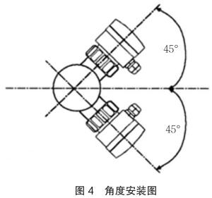 垂直安裝時確保流向由下而上,如圖 4 中箭頭所示,應(yīng)與管道水平中心線成 45 度角安裝防凍液流量表。