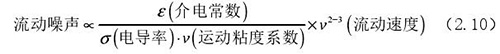 流動(dòng)噪聲主要出現(xiàn)在低電導(dǎo)率流體的檢測中,由輸出端輸出的直流*化電壓時(shí)常出現(xiàn)左右擺動(dòng)的現(xiàn)象,而此種擺動(dòng)的電壓被稱為流動(dòng)噪聲。上式(2.5)中可以觀察了解到流體電導(dǎo)率和流動(dòng)噪聲呈現(xiàn)出負(fù)相關(guān)關(guān)系,由此可以了解到在進(jìn)行低電導(dǎo)率的計(jì)算中需要重點(diǎn)考慮位移電流。
