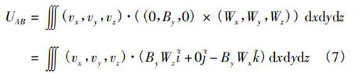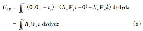 式中V為注水流量計傳感器測量空間;W→為權(quán)函數(shù)。在直角坐標(biāo)系(x,y,z)中,式(5)可以轉(zhuǎn)換為