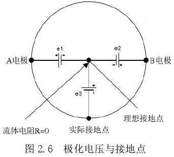 直流干擾主要來源于白酒流量計(jì)工作時出現(xiàn)的電化學(xué)噪聲。當(dāng)電解質(zhì)和接液部件一旦接觸,電解質(zhì)中的正負(fù)離子將會即刻出現(xiàn)定向運(yùn)動,即使沒有通電,電解質(zhì)中的正負(fù)離子會產(chǎn)生一個定向運(yùn)動,此時在電解液中會形成一個明顯的電位差,出現(xiàn)的此種現(xiàn)象被稱為*化現(xiàn)象。可從圖 2.6 中進(jìn)行觀察,兩個電*若是產(chǎn)生了大小相等,方向相反的電位e1=e 2時,兩個電*之間的電位差可視為零;當(dāng)兩個電*之間的電位呈現(xiàn)出e1 ≠e2 的關(guān)系時則表示兩個電位之間存在一個明顯的電位差,產(chǎn)生的電位差之間則會出現(xiàn)相應(yīng)的電流從而形成*化電壓。此電壓與共模電壓3e 將會共同被轉(zhuǎn)換器前的放大器攝取,此時*有可能會出現(xiàn)放大器無法工作的情況,此種情況主要是由于*化電壓過大所導(dǎo)致,當(dāng)*化電壓較大時將會把放大器的輸入端堵塞,此時放大器無法正常工作。為了能有效的避免發(fā)生此種情況需要控制降低在電磁場中所產(chǎn)生的*化電壓。