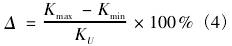 式中:Kmax為同**量點下不同工況下儀表系數*大值;Kmin為同**量點下不同工況下儀表系數*小值。