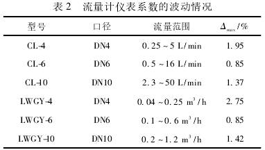 其中,0.75<K<1.2。在此基礎上,每次試驗過程中,根據流量計的流量范圍,選取9個流量點,每個流量點校準3次。流量計的銘*信息及直管段口徑選擇詳見表1。
