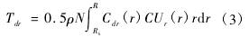 通過對輪轂半徑Rh到葉頂半徑Rt的驅動力矩進行積分可以獲得作用在整個葉片上的驅動力矩Tdr(不含黏性影響):