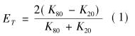 式中:K80為某流量點(diǎn)80℃下儀表系數(shù),L-1;K20為某流量點(diǎn)20℃下儀表系數(shù),L-1。
