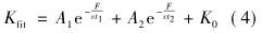 可由平均流速和運(yùn)動(dòng)粘度計(jì)算得到,所以儀表系數(shù)K是流量計(jì)輸出頻率與運(yùn)動(dòng)粘度之商(F/v)的函數(shù)。研究*終確定采用雙指數(shù)衰減函數(shù)進(jìn)行擬合,雙指數(shù)衰減函數(shù)Kfit表示為