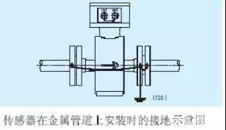 傳感器在金屬管道上安裝(金屬管道內壁沒有絕緣涂層),按下圖接地。