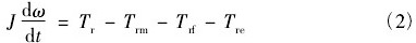 式中: J為渦輪的轉(zhuǎn)動慣量;ω為渦輪的旋轉(zhuǎn)角速度,t為時間,Tr為氣流對葉片的推動力矩,Trm為機械摩擦力矩,Trf為流動阻力矩,Tre為電磁阻力矩。