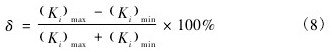 式中: (Ki)max、(Ki)min分別指在整個流量范圍內(nèi),各流量點儀表系數(shù)的*大值和*小值。