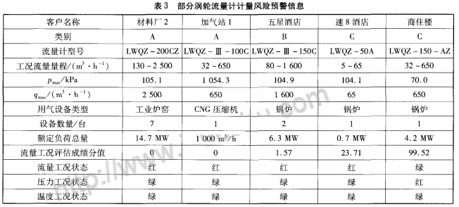 表3是建立渦輪流量計計量風險預警系統后,得到的部分渦輪流量計計量風險預警信息。