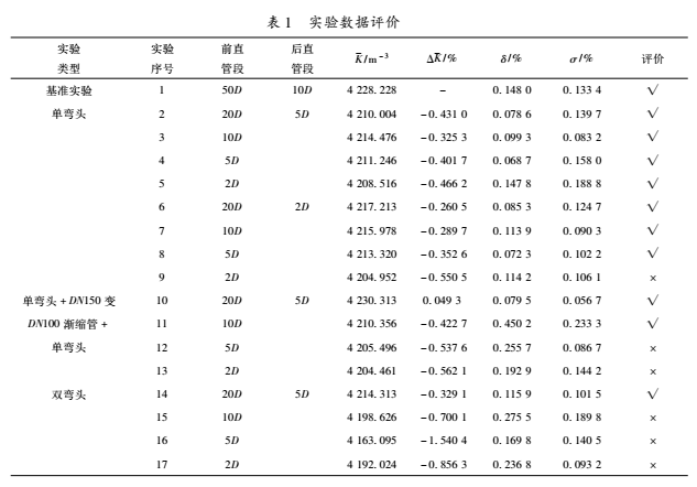c.在后2D的數據中,前2D的結果不滿足評價準則,所以對單彎頭而言,后直管段長度為5D情況下前直管段長度至少為2D,后直管段長度為2D情況下前直管段長度至少為5D。